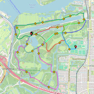 De route is samengesteld uit 6 delen. We starten om 9:30u bij cricketvereniging VRA in het Amsterdamse Bos, lopen vervolgens 4 lusjes in het Bos en gaan daarna weer terug naar VRA. Op de route passeren we 5x onze verzorgingspost waar voor de deelnemers water, sportdrank en bananen beschikbaar zijn. Op de verzorgingspost is ook een EHBO-team aanwezig. De post is ingericht bij de Grote Vijver.